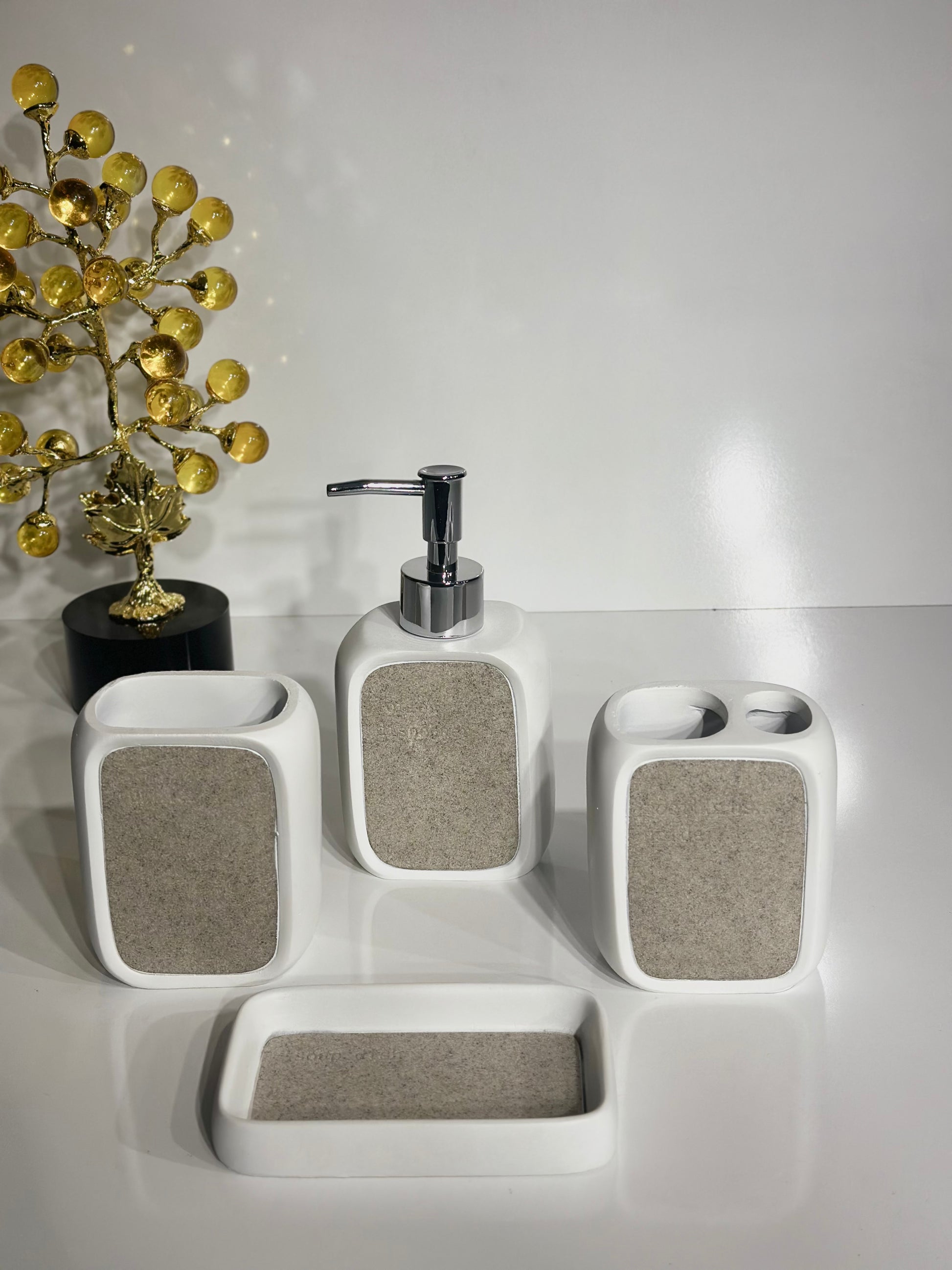 Ensemble de Salle de Bain 4 Pièces – Design Blanc et Gris pour une Touche Moderne