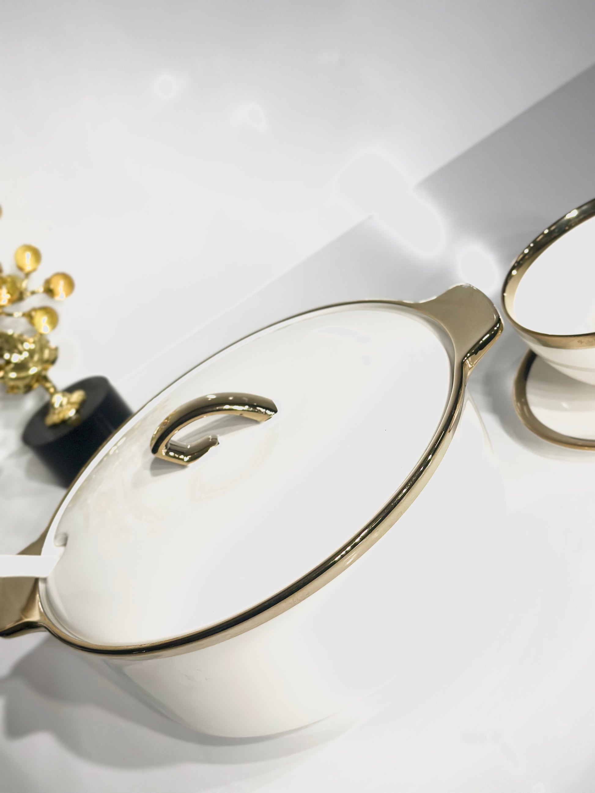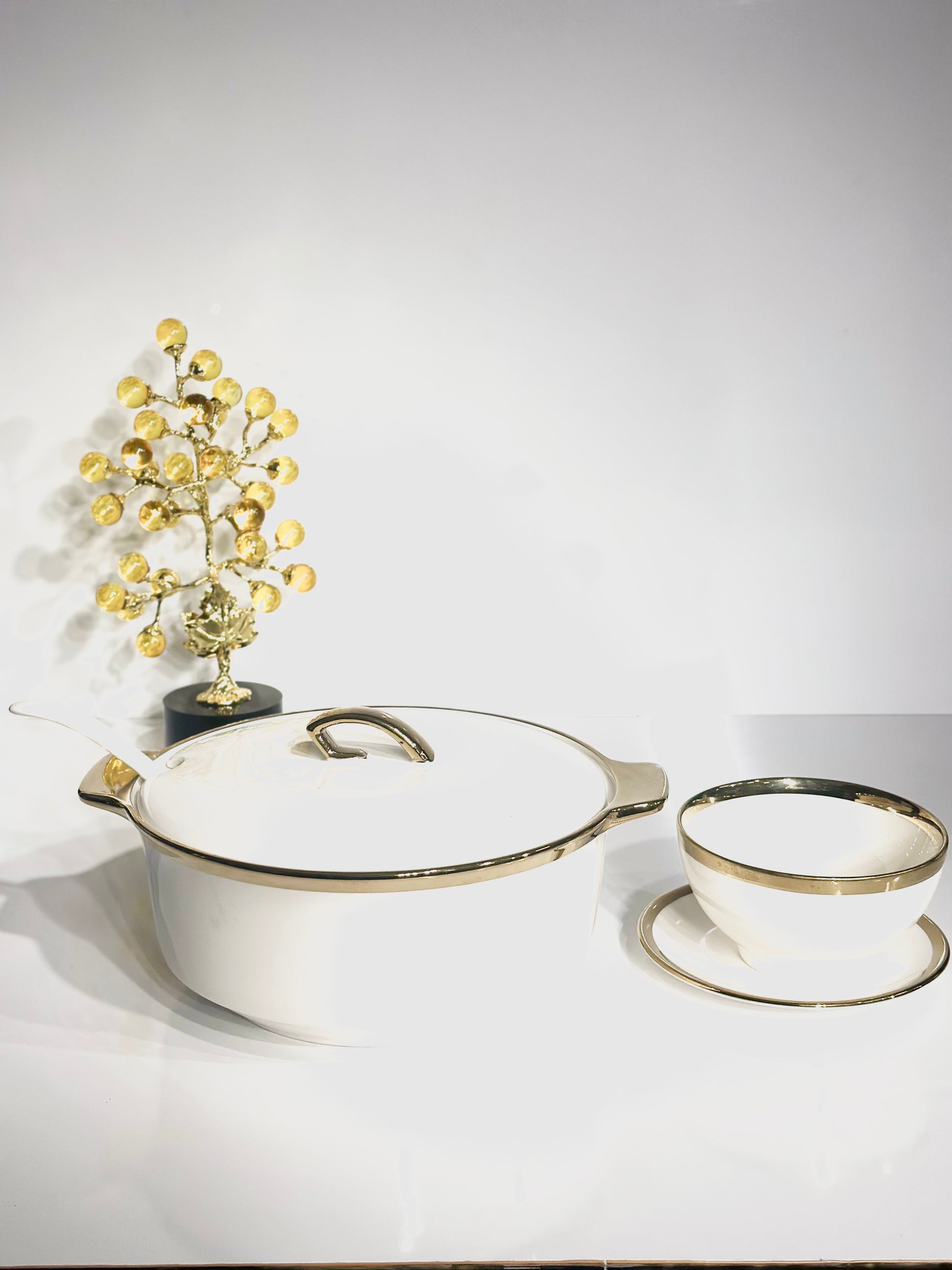 Service Soupière Blanc avec Contour Doré – Élégance et Raffinement